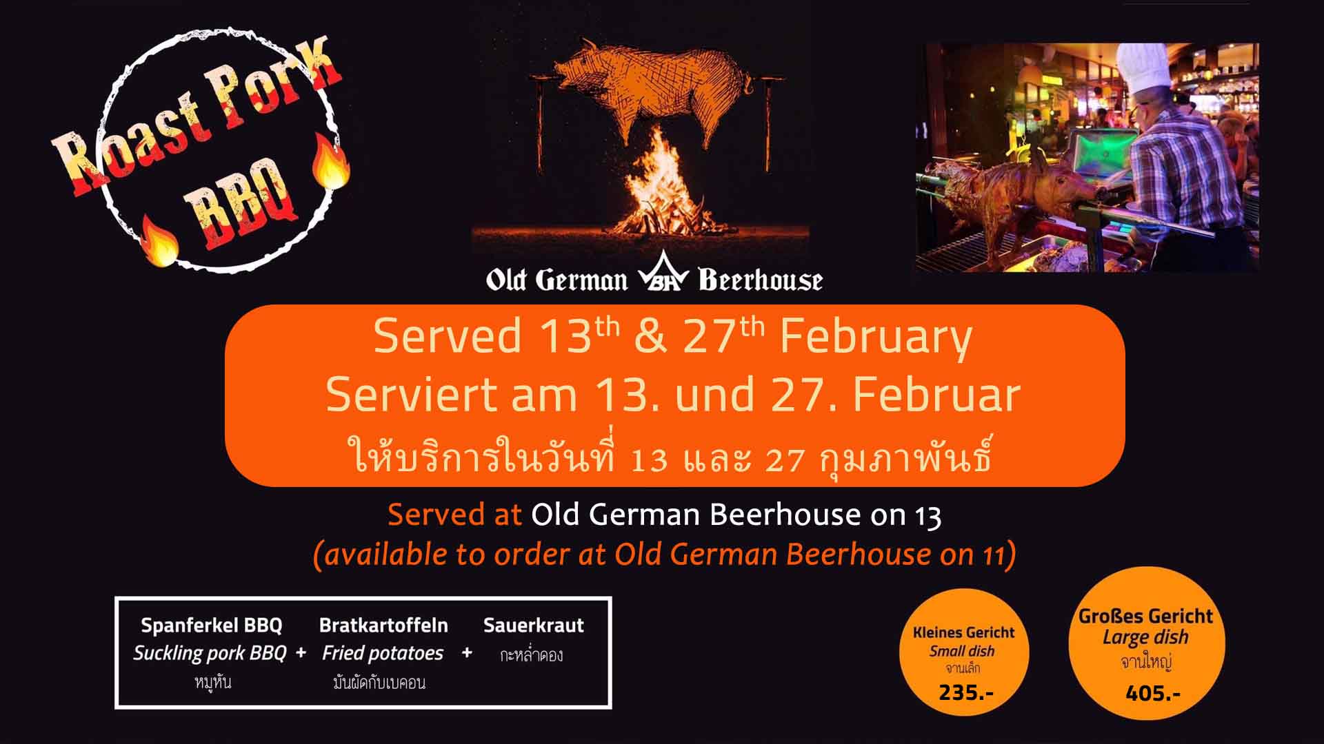 Everyday in Old German Beerhouse on 11 At Old German Beerhouse on 13. Available to order at Old German Beerhouse on 11 10% discount for guests of these local hotels (excluding discounted and happy hour items) Simply present you room keycard to service staff when requesting your bill 10% discount for VIP card holders (excluding discounted and happy hour items) Please ask staff at the restaurant for more details.