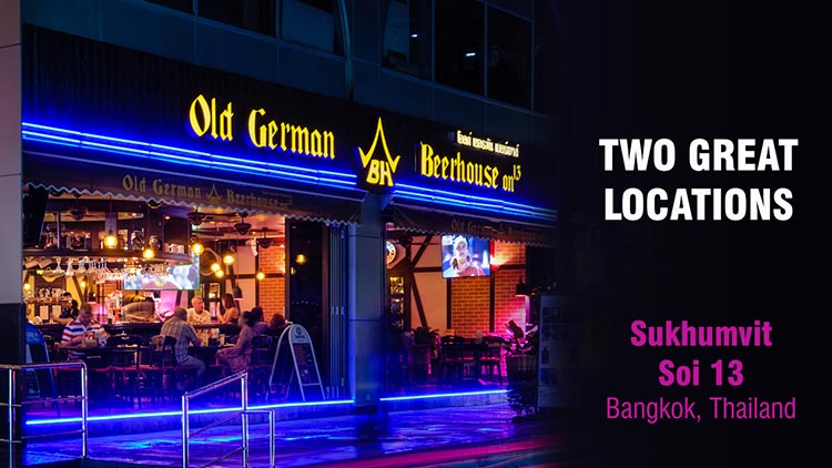 Since 1986, we have been serving top quality German food to our discerning customers in Bangkok. Originally in an open air garden location in Soi 23, we are now we now have Old German Beerhouse in Sukhumvit Soi 11 and Soi 13, still under the same family management, where we look forward to welcoming our customers and friends.